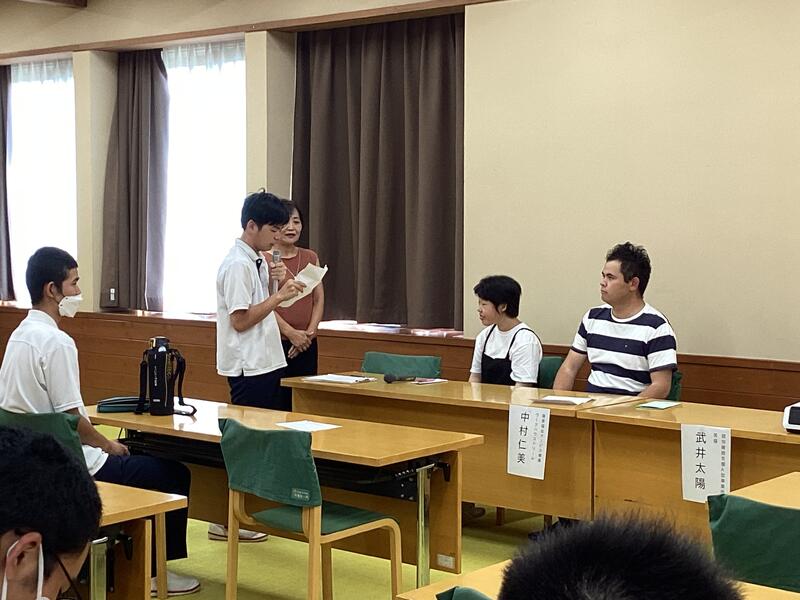 9月4日(水)に「卒業生を囲む会」が開催されました。「卒業生を囲む会」は、前年度の卒業生が来校し、現在の仕事や生活の様子を在校生の前で話してくれる行事です。今年は5名の卒業生が参加してくれました。事前に撮影された仕事の様子を映した動画を観ながら、大変なことや楽しいこと、休日の過ごし方、給料のことなど、後輩に役立つ情報をたくさん共有してくれました。また、後輩からの質問に直接答えたり、就職に役立つメッセージを伝えたりしました。