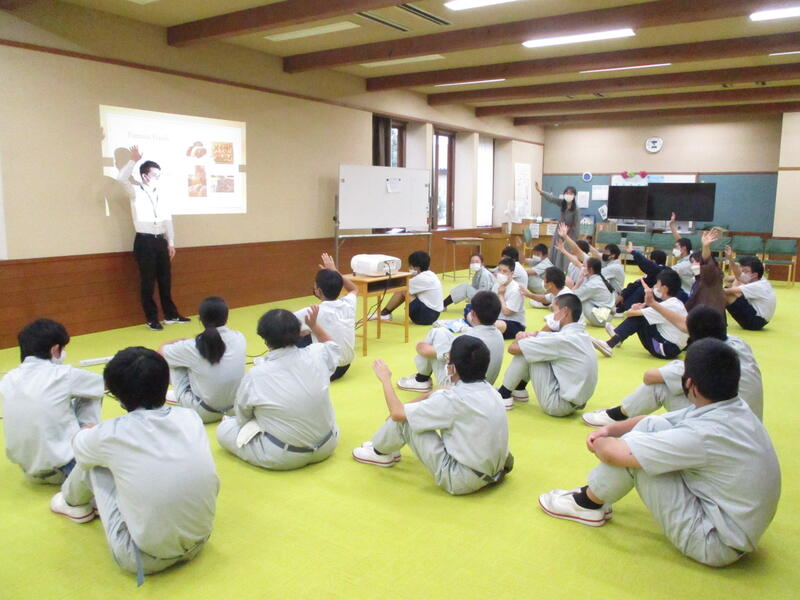 外国語指導助手マーク先生をお招きし、英語と日本語が混ざり合う国際交流を10月5日(水)に実施しました。生徒たちはしっかりと耳を傾け、マーク先生が話す生きた英語を聞き、自身で身に付けた英語を活用しながら、交流を進めることができました。