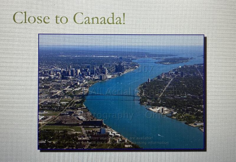 英語での互いの挨拶後、マーク先生の自己紹介風景です。パワーポイントを使い、生徒たちが目で見ても分かるように、自己紹介をしてくださいました。マーク先生はアメリカ北部に位置するミシガン州のご出身です。隣接される国はカナダ、橋一本で行ける距離です。生徒たちからはあまりの近さに、『泳いで行ける』という発言が飛び交いました。マーク先生はその場で即効、『泳いでいくと、それは違法になってしまう。他の国に行くときは必ずパスポートが必要なんです。』と生徒たちに指導をされました。パスポートを必ず持参し、車でランチ
