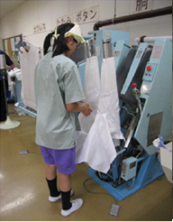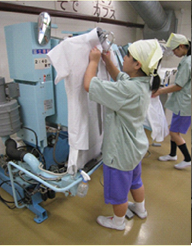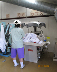 家政被服科のクリーニング作業では、職員の注文や公民館の注文を受けて、衣類などを預かり、